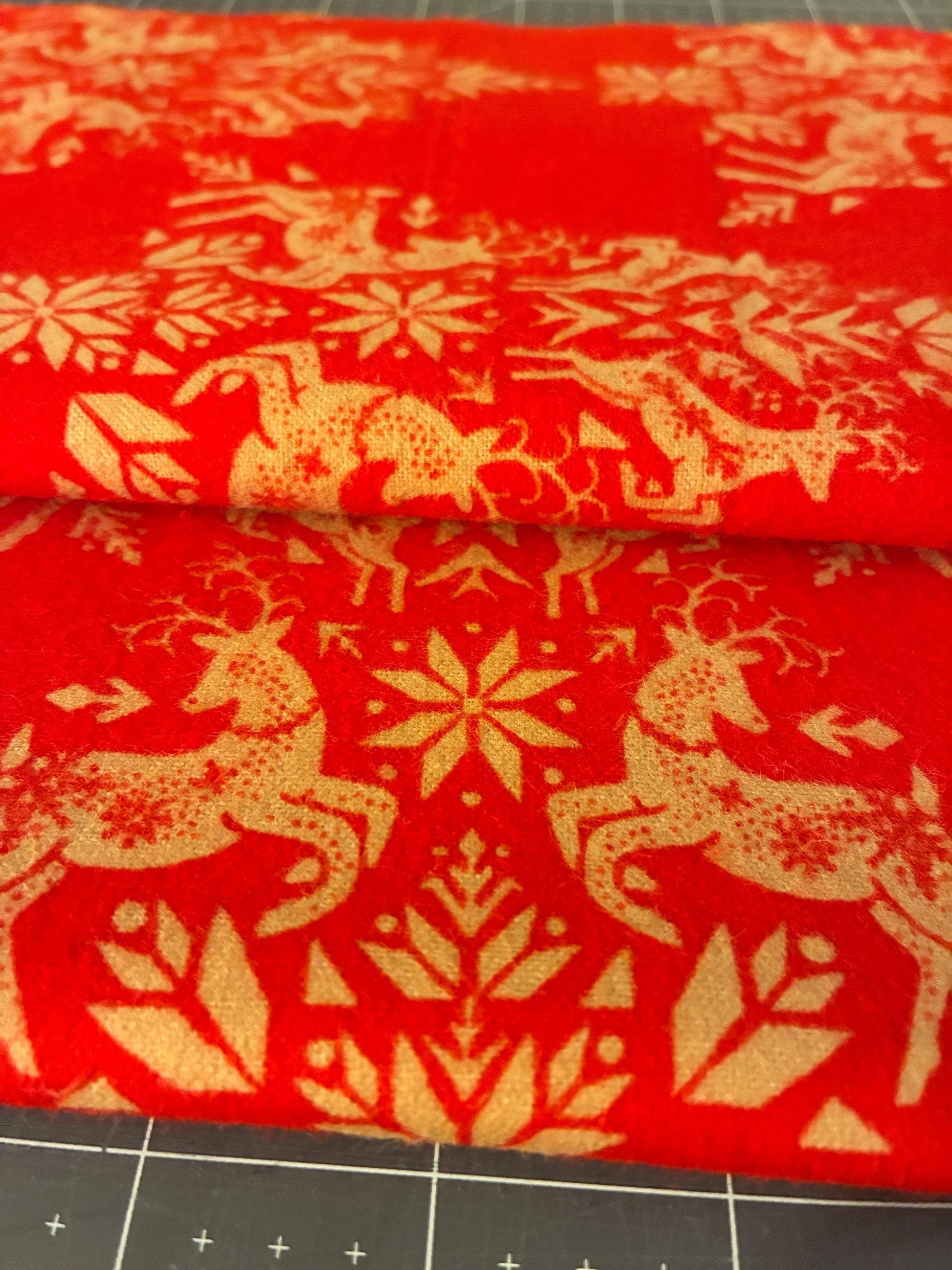 Pattern: Red Background with Gold Reindeer / Snowflake / Trees