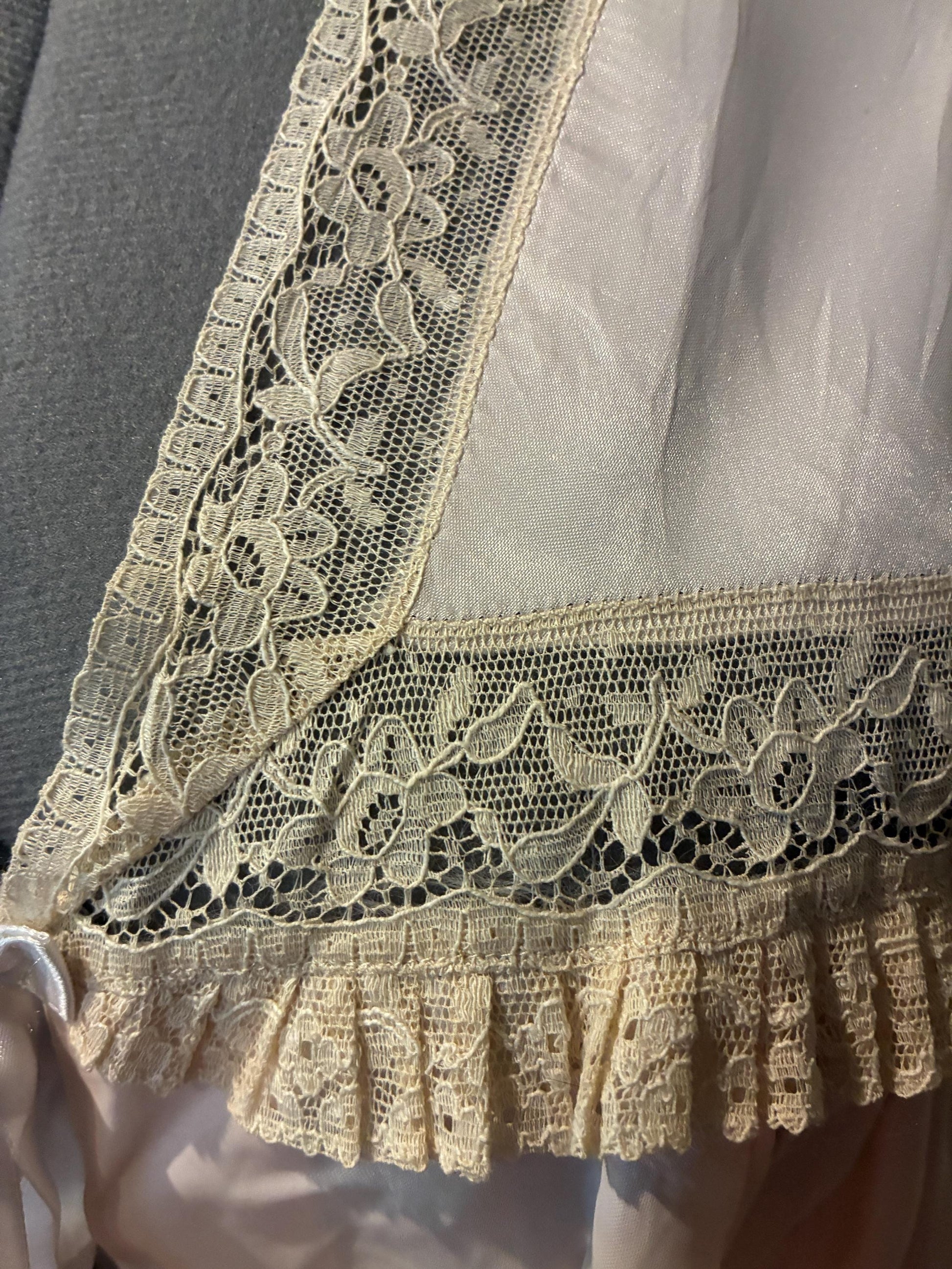 Vintage Silk Baby Doll Lingerie Boudoir Bed Pajama Jacket w/ Lace Trim
