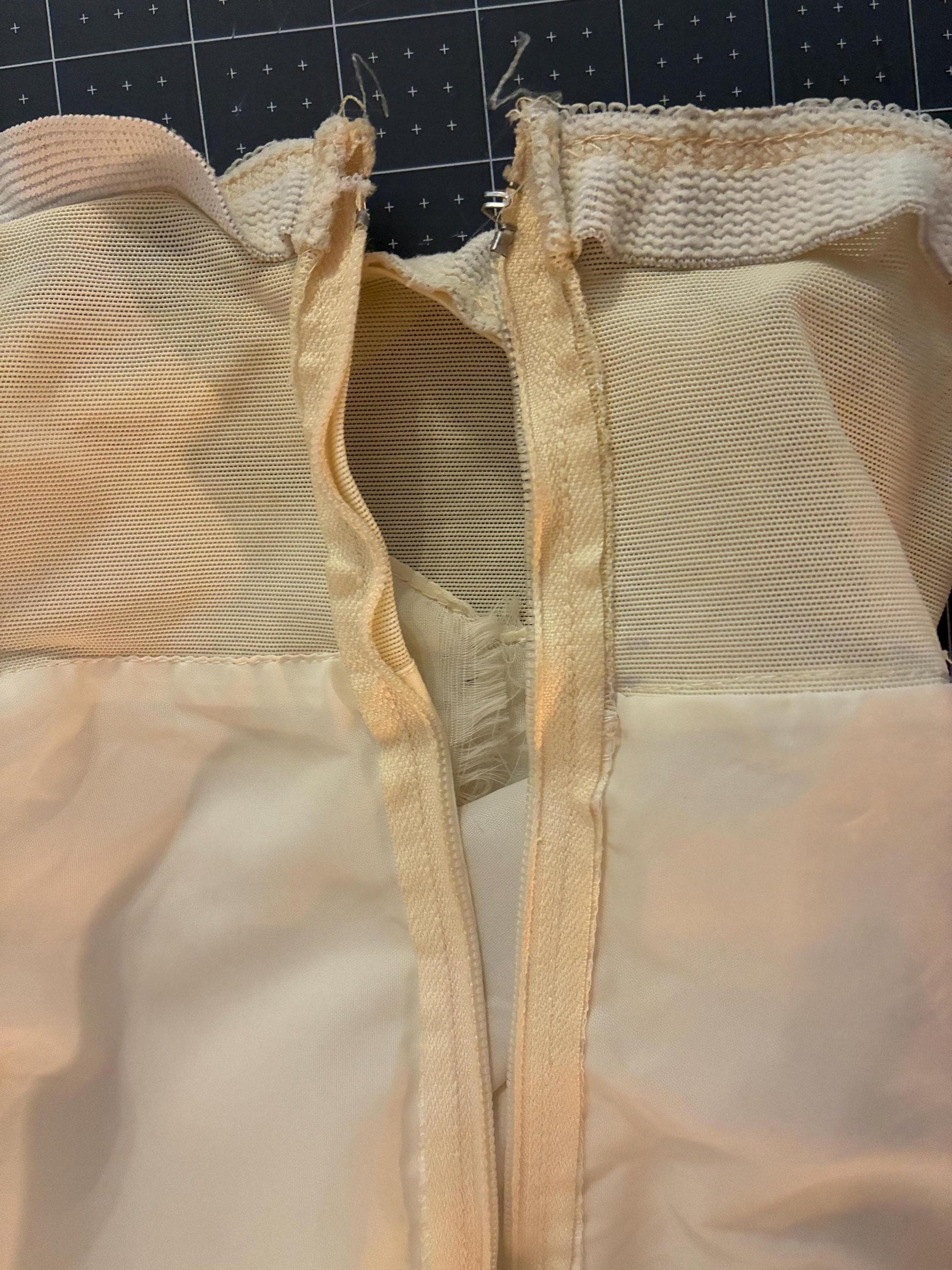 Multiple clasps for comfort and stability. Elastic waistband has deteriorated slightly, but still has plenty of stretch! Small tears near waist, but they don't affect functionality.